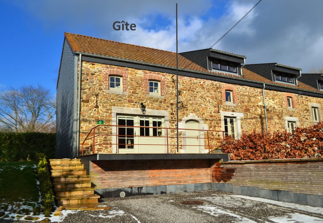 Le gîte Gête écologique, basse énergie Murs intérieurs en argile Eaux usées traitées par notre lagunage Les pièces Rez-de-chaussée 30 m2 ► Living | Coin cuisine Étage 30 m2 ► 1 chambre | Salle de bain Voir le plan du gîte Capacité : 2 personnes + 1 bébéChauffage central dans chaque pièceRéseau sans fil WiFiTerrasse 11 m2Jardin 70 m2Parking pour 2 voitures2 vélos à disposition Le living Le coin cuisine La chambre La salle de bain Vide Les extérieurs OU BIEN Le rez-de-chaussée L'étage Les extérieurs